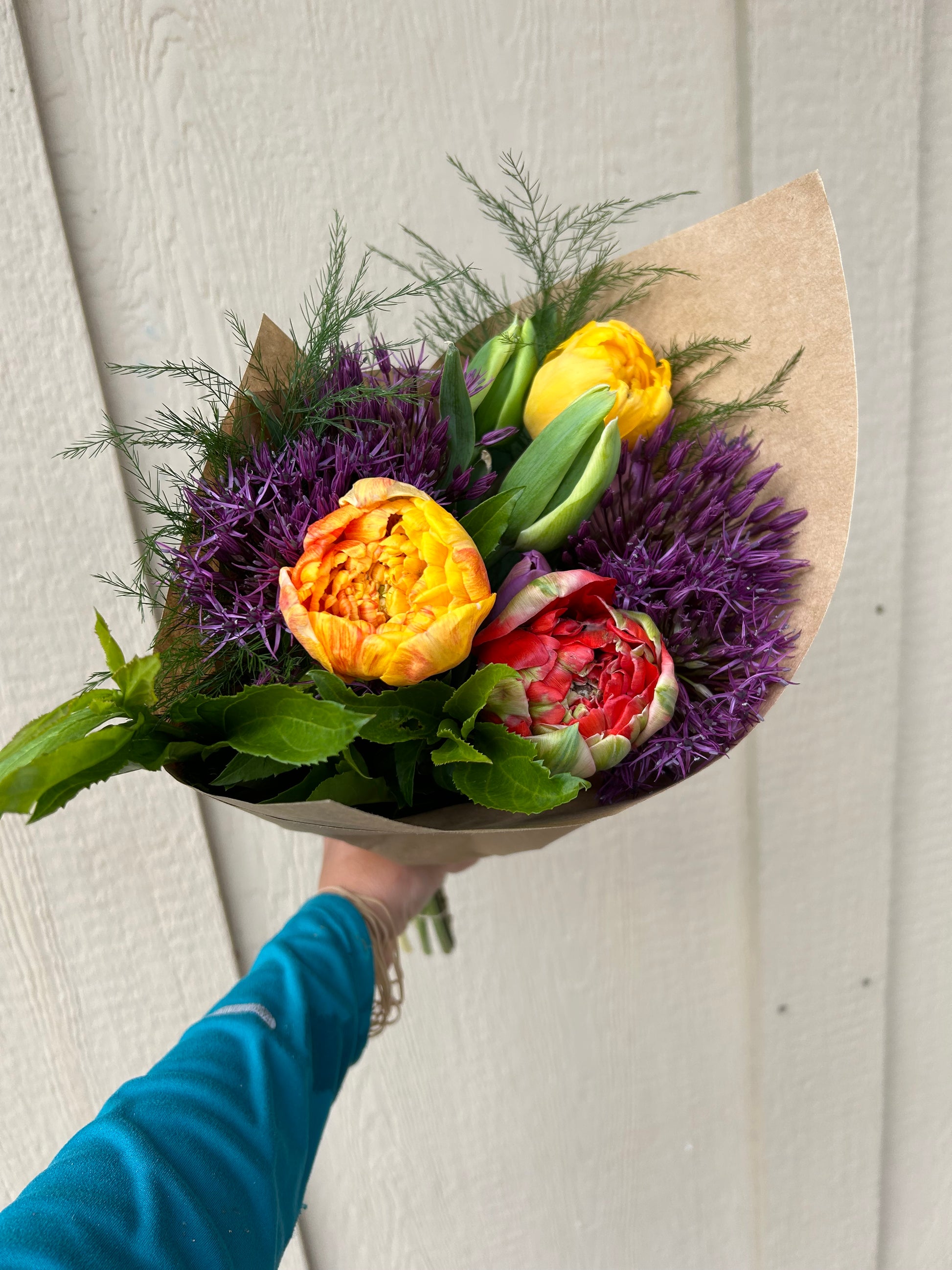 Every bouquet is grown, harvested, and hand-arranged right here in Colorado by Ellen and Matt. No chemicals, no mystery origins—just fresh, local flowers from farmers you can trust.